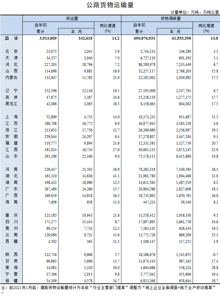 2021年12月公路貨物運輸量