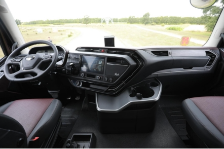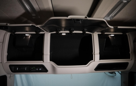 J6V的駕駛室采用了平地板設計,這是它與現有J6系列車型最大的不同。走進J6V駕駛室內部,最大的感受就是——“空間更大了”。駕駛室內,中間位置的通過性明顯提升,空間提升約700L,中部地板距離頂部高度達到2米以上,即便是身材高大的駕駛員也不會有任何壓迫感。平地板技術的應用,不僅增加了駕駛員日常做飯休息的空間,還讓內部的儲物空間得以提升,頂部的儲物箱容積更大,在臥鋪中間下部還增加了一個”大抽屜“。