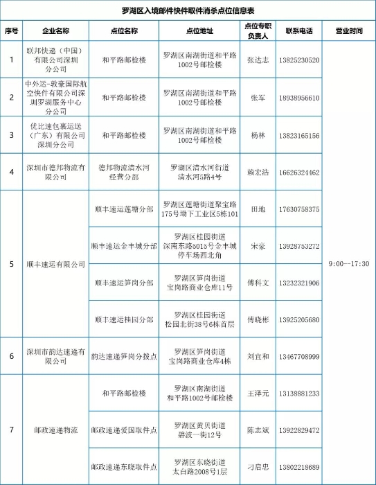 附表:羅湖區(qū)入境郵件快件取件消殺點位信息表