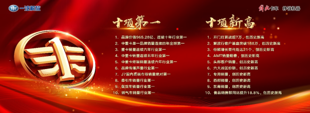 上一年,面對疫情反復(fù)、法規(guī)升級、需求波動的復(fù)雜環(huán)境,中國商用車行業(yè)競爭空前激烈,一汽解放以領(lǐng)航者姿態(tài),馭勢而戰(zhàn),拓局領(lǐng)航,在拼搏奮進中再次實現(xiàn)巔峰跨越。全年,解放以總銷量近44萬輛、中重卡近37萬輛、中重卡份額25.7%的驕人業(yè)績,再創(chuàng)十項歷史新高,勇奪十項行業(yè)第一。創(chuàng)下國內(nèi)重卡六連冠、中重卡五連冠,全球四連冠,品牌價值連續(xù)十年行業(yè)第一。贏十四五首戰(zhàn)“開門紅”,再續(xù)解放璀璨華章。