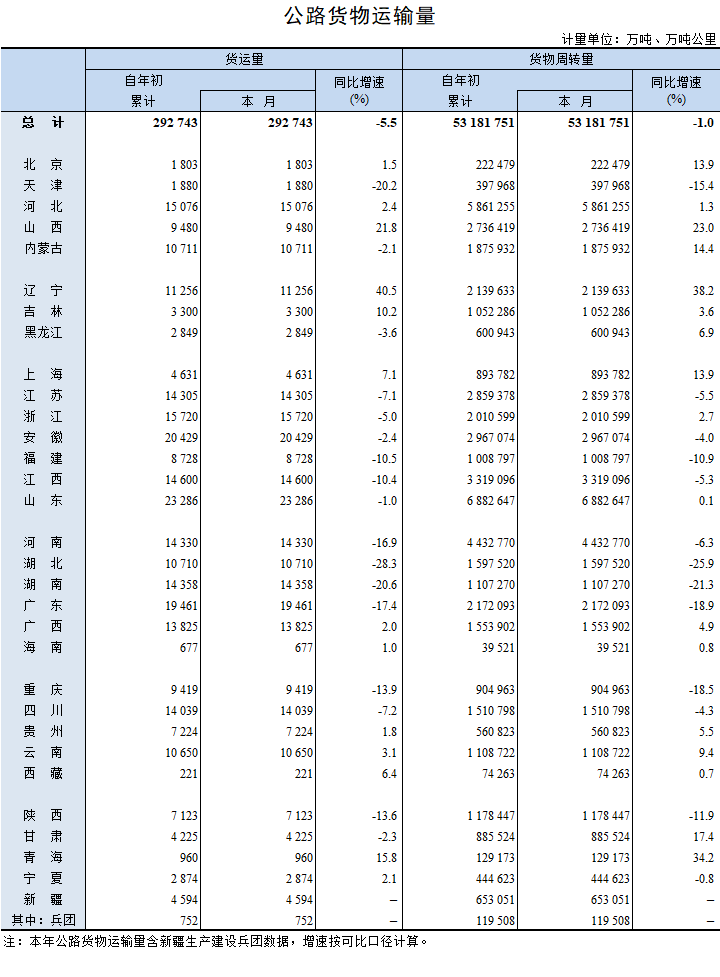2022年1月公路貨物運輸量