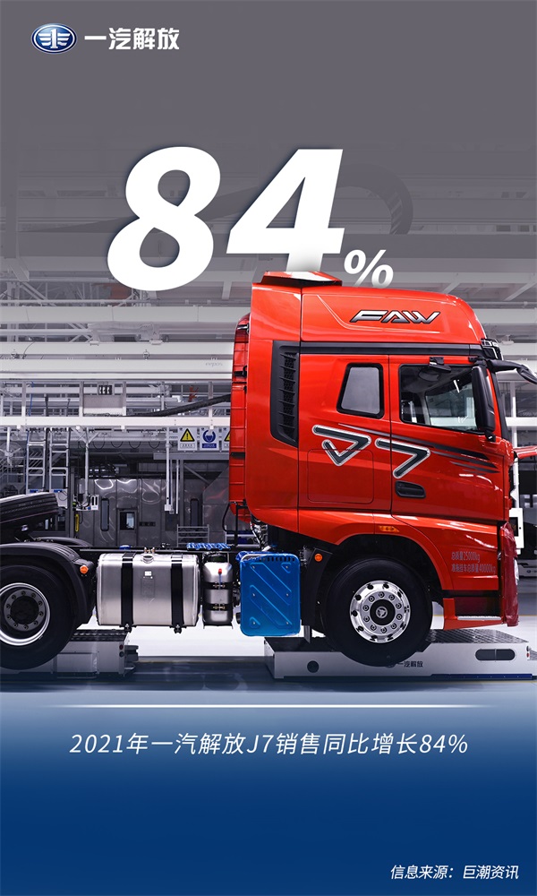從產品表現來看,受益于營銷能力及研發創新能力的持續提升,一汽解放在高端重卡市場、海外市場、新能源市場表現出色。2021年,一汽解放高端重卡J7銷售同比提升84%,實現高端領航;海外市場方面,全年海外銷量1.5萬輛,同比大增近150%,創歷史新高;同時,公司新能源產品全年銷售2228輛,同比增長15.68%。
