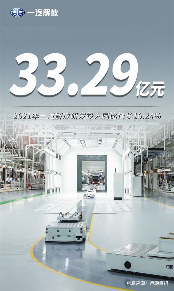 一汽解放堅持以“技術領先、首創體驗、集成創新、強化應用、協同高效”為指引,構建了完整的自主研發體系,打造了低碳化、電動化、智能化、信息化、高品質即“四化一高”五大技術平臺,是掌握世界級整車及三大動力總成核心技術的商用車企業之一。報告顯示,2021年度,公司研發投入33.29億元,同比增長16.24%。