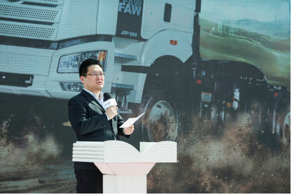 活動中,作為一汽解放重要的合作伙伴,汾陽市瑞通能源有限公司駐內蒙口岸總經理 宋瑞琪致辭,共同表達了對于解放產品的認可和贊譽,并期待在未來的日子中持續開展深入合作,共同推動運輸行業的綠色轉型,攜手構筑智慧物流的嶄新格局。
