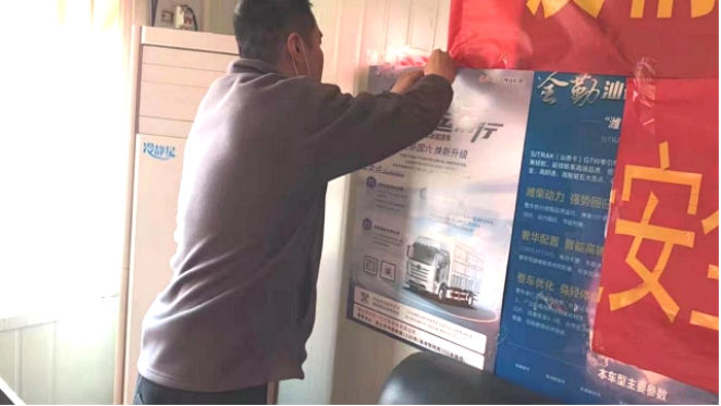 在加強業務學習的基礎上,商丘中吉也會對核心二網進行上門培訓,進一步強化解放產品和政策的認知,增加二網對解放品牌信心。同時,在每一個卡車司機能接觸到的地方,張貼各種宣傳物料,讓更多人了解解放卡車。