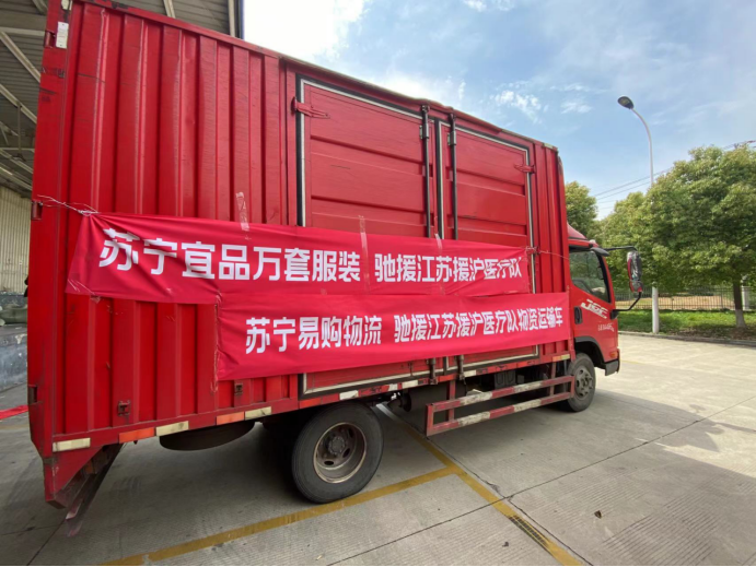 截至4月11日,上海蘇寧易購物流倉儲、配送等百余名一線服務人員堅守一線,其中一支由業務能力強、抗疫經驗豐富的配送員組成抗疫先鋒隊,執行全區特別是封控區的民生物資運輸保障任務,先后將35000份蔬菜送往浦東區、徐匯區、長寧區、金山區的24個小區,16000份裝滿面包、酸奶、火腿腸等食品的“愛心禮包”送抵上海工業綜合開發區內各企業、建筑工地、員工宿舍。作為全國援滬物資的中轉基地,上海蘇寧易購奉賢物流基地保持著24小時的運轉,通過“綠色通道”日不間斷地進行防疫物資配送,總計出車百余次,配送物資上百噸。