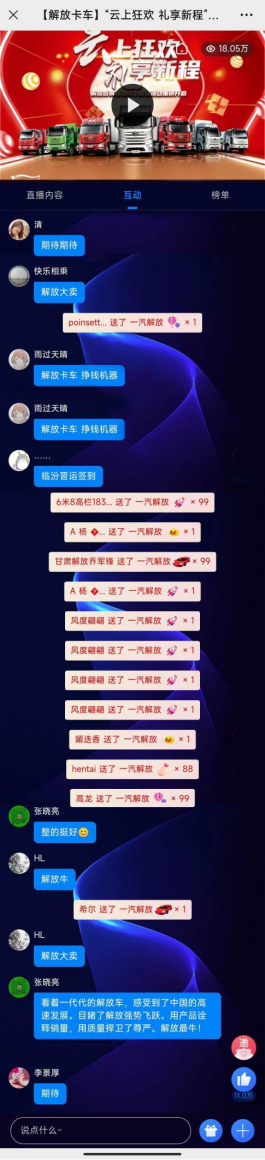 值得一提的是,為了惠及全國各地不同卡友,讓解放卡車為更多卡友“零距離”服務,在本場活動之后,一汽解放將在全國開展百城聯動直播活動,屆時五湖四海的卡友都可以享受到購車優惠。