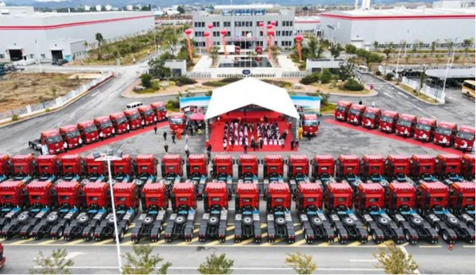 ● 2月23日,一汽解放柳鋼承運物流公司大客戶交車儀式上,200輛解放重卡統一交付。