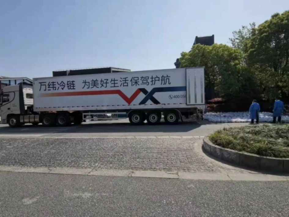 面對民生保供,萬緯物流義不容辭。目前萬緯物流在上海擁有4個冷鏈園區,服務商超零售、連鎖餐飲、快消、肉類、薯類、果蔬、乳制品7大行業客戶,且擁有豐富的冷鏈運輸車隊資源,具有天然的資源優勢。4月初,萬緯上海區域團隊接洽青浦區政府了解到當地有社區保供物資采購需求,團隊迅速牽線光明旗下上海蔬菜集團、百勝中國、泰森食品等企業,經過協商,并協同萬緯冷鏈供應鏈團隊完成招采流程,由萬緯采購上海蔬菜集團的新鮮時蔬、百勝中國的冷凍雞翅、泰森食品的冷凍肉等產品,負責存儲、分包、運輸,在最短時間內將民生保供物資運送到青浦區。