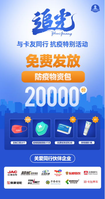 關愛仍在延續。為致敬堅守一線的正能量貨車司機,同時進一步凝聚社會各界的力量助力卡友前行,4月25日,卡友地帶“追光·與卡友同行”抗疫特別活動全面啟動,2萬份“防疫物資包”也將從即日起陸續發放至卡友手中。