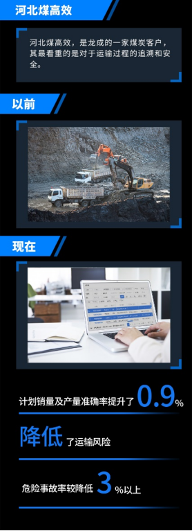 河北煤高效,是龍成的一家煤炭客戶,其最看重的是對于運輸過程的追溯和安全。