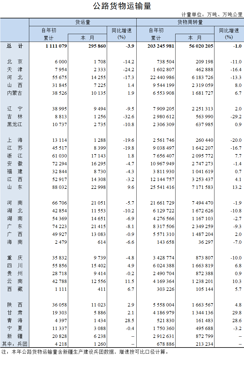 2022年4月公路貨物運輸量