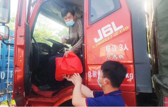 4月2日,解放400客服接到了一位卡友的來電:運送物資的車隊滯留在青島萊西的高速口2天,車內已經沒有吃的了,希望能得到幫助。4月以來,出于疫情防控的需要,外地車輛進出萊西區域各高速出入口需要接受嚴格的檢查。運送防疫物資的順豐車隊,因為排隊等待下高速,已經在高速口滯留兩天時間了,車內也都斷水斷糧。解放客服了解到車隊的救援請求后,馬上聯系到山東商代處幫助處理。山東商代處立刻指派車隊所在區域的經銷商青島金海超前往高速口救援,青島金海超馬不停蹄地趕往車隊的臨時停靠地,將水和食物搭配好,一輛車接著一輛車交到車隊卡友手中。車隊卡友收到準備齊全的生活物資后,紛紛表示感謝,同時也感動于解放經銷商能在車隊已經離開滯留地的情況下,還能繼續趕來為車隊送上物資。有一位車隊卡友更是感慨道:“沒想到一個電話解放公司能這么重視,而且能慰問整個車隊,為解放大愛精神感動!”