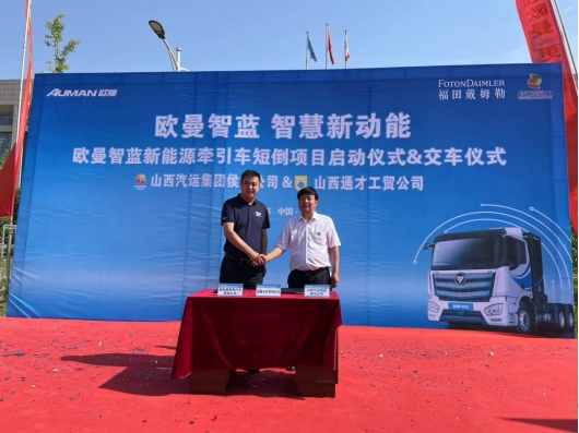 當前,我國生態文明建設進入了以降碳為重點戰略方向、推動減污降碳協同增效、促進經濟社會發展全面綠色轉型、實現生態環境質量改善由量變到質變的關鍵時期。商用車作為“雙碳”目標的攻堅板塊,在國家“雙碳“目標指引下,歐曼準確把握市場趨勢,布局新能源重卡市場,以客戶為中心,提供優質產品和貼心服務。2022年6月2日,以“歐曼智藍 智慧新動能” 主題的歐曼智藍新能源牽引車倒短項目啟動儀式&交車儀式在山西侯馬舉行。歐曼重卡與山西汽運集團侯馬公司達成深度合作,共同打造智能、綠色的鋼材運輸環境,助力打贏藍天保衛戰。