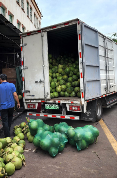 在旺季,華哥平均每天都賣個三五千個椰子,如此巨大的運量,華哥需要派出兩輛車同時運輸,一輛智藍輕卡,一輛燃油車。但是相比燃油車,華哥覺得電車的優勢顯而易見:“因為他不用掛檔,然后起速跑路,包括超車這些駕駛都比油車好不止一點點。”