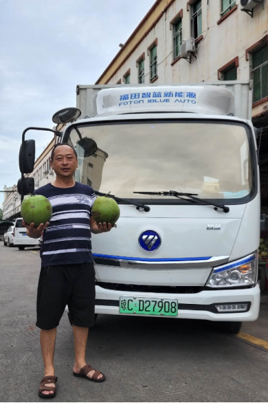 提到為什么會選擇智藍輕卡,華哥表示“主要是省錢,不用再加油了,海南的油一直比內地的貴,開智藍輕卡一天差不多能省個200元,而且充滿電基本能滿足每天的貨運需求。”