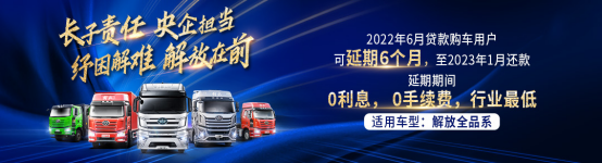 長子責任,央企擔當,紓困解難,解放在前!2022年6月貸款購車用戶,可延期6個月,至2023年1月還款 !該政策適用解放全品系車型。
