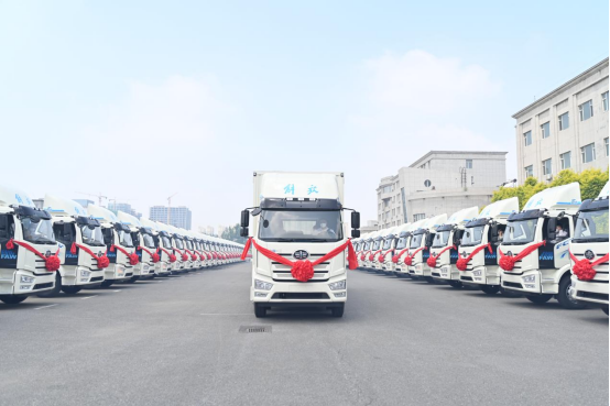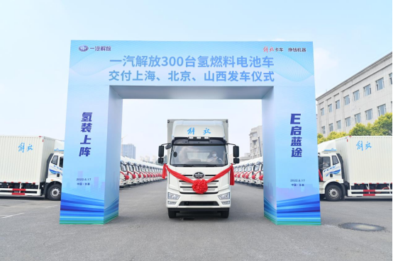 一汽解放300臺(tái)氫燃料電池車發(fā)車儀式現(xiàn)場(chǎng)