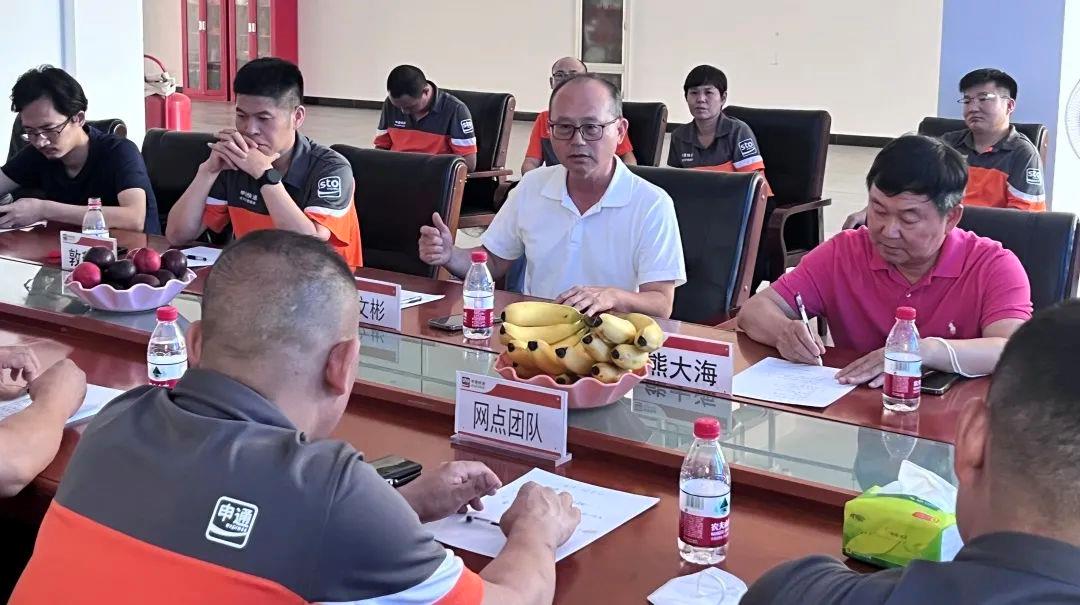在參觀完轉(zhuǎn)運(yùn)中心,王文彬和京津冀大區(qū)的十余家網(wǎng)點就地召開座談會。