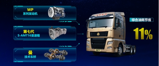 車輛搭載的WP14T發(fā)動(dòng)機(jī)是全球首款熱效率突破51%的柴油機(jī),由濰柴為中國(guó)重汽專屬定制,以全球領(lǐng)先技術(shù)實(shí)現(xiàn)整車動(dòng)力性能的大幅提升;配合由中國(guó)重汽自主研發(fā)的第七代S-AMT16變速箱,通過(guò)空檔滑行功能和駕駛行為優(yōu)化等智慧功能,實(shí)現(xiàn)智慧節(jié)油、智能操控,無(wú)論新手還是老司機(jī),怎么開(kāi)都省油;采用國(guó)內(nèi)唯一自帶油濾器的小速比曼技術(shù)后橋,以超高傳動(dòng)效率實(shí)現(xiàn)高效節(jié)油。高效專屬動(dòng)力鏈配合超低風(fēng)阻駕駛室,將體系化節(jié)油的優(yōu)勢(shì)發(fā)揮到極致,綜合節(jié)油11%。