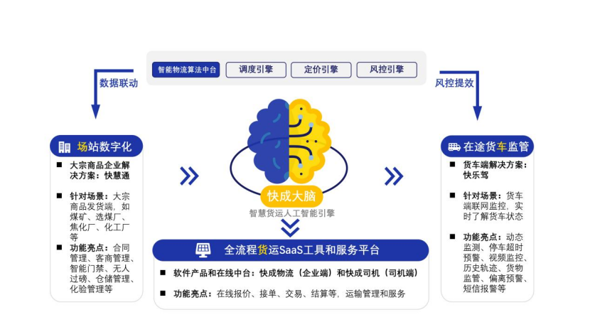 快成物流堅持在AIoT、大數(shù)據(jù)、算法、數(shù)字軟件等方面進行技術(shù)創(chuàng)新投入,為貨運經(jīng)營者及運輸主體提供一站式SaaS服務(wù)平臺,覆蓋數(shù)字運力服務(wù)、貨物在途安全解決方案、卡車后市場O2O服務(wù)等,搭建起了完整的閉環(huán)生態(tài)圈;同時基于海量運輸數(shù)據(jù),結(jié)合快成的AI算法引擎“快成大腦”,實現(xiàn)精準定價、運力分層、聯(lián)程匹配、全局調(diào)度。官方數(shù)據(jù)顯示,快成物流業(yè)務(wù)已覆蓋全國18個省(市、自治區(qū)),運輸線路超9萬條,連接了近85萬平臺司機、7000家貨主企業(yè)和近600家油氣商戶,幫助他們降低成本、提升效率、增加收入。