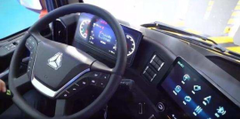 搭載的彩色液晶儀表盤,采用了懸浮式設計,兩側的轉速表、時速表層次分明;12.3寸的智能中控屏,可以實現內容定制,方便卡友了解車輛運營信息,而且具有語音交互功能,通過語音即可對車輛進行簡單操作,方便智能;另外,懸浮式液晶顯示屏提供四路影像,具有盲區監測預警功能,進一步提升行車安全性。