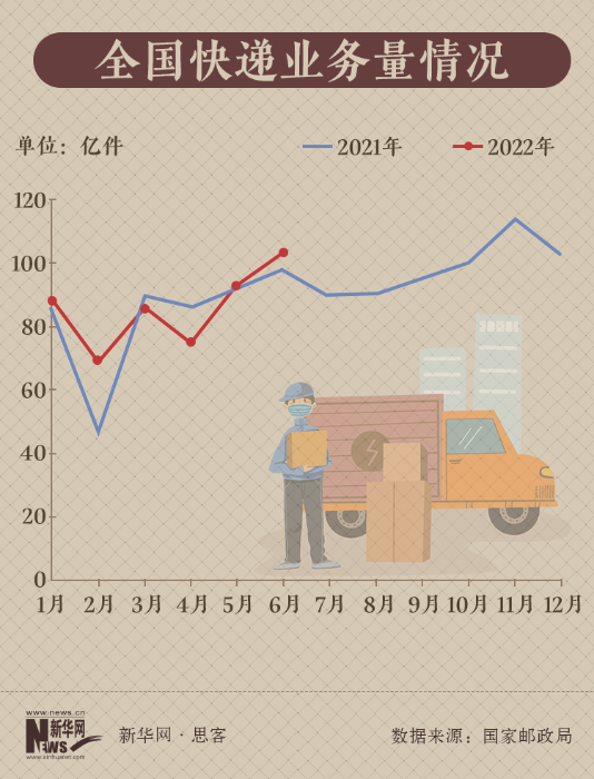國家郵政局?jǐn)?shù)據(jù)顯示,今年上半年全國快遞服務(wù)企業(yè)業(yè)務(wù)量累計完成512.2億件。根據(jù)國家郵政局此前報告,2021年,全國快遞業(yè)務(wù)量完成1083億件,首次突破千億件。而目前在疫情影響下,全國半年快遞業(yè)務(wù)量仍然超過了500萬億件。