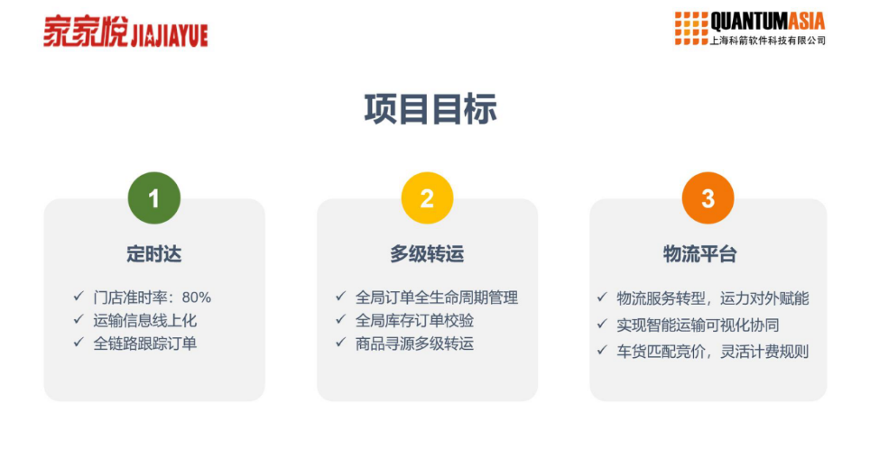 此次合作,科箭軟件將為家家悅供應鏈物流數字化建設提供技術支撐,通過“多級轉運”全局訂單生命周期管理、全局訂單校驗以及商品尋源多級轉運,提升家家悅的物流綜合效率,降低物流成本,助力家家悅從傳統型、單一型公司向技術型、平臺型公司轉變,為家家悅實現物流服務轉型和供應鏈對外賦能。