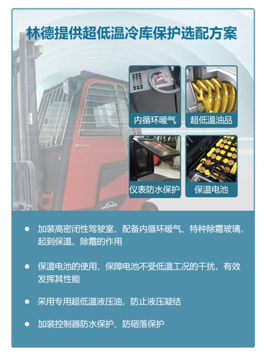 林德通過對叉車防寒、防水、續航等方面的改裝與保護,滿足電動叉車在零下55至零下60度工況下連續作業的需要,為每場“保鮮戰”排憂解難。