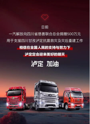 每次災難的前面,都少不了卡友運送物資的身影;每個卡友出現的地方,都少不了一汽解放服務人員守護伴行。