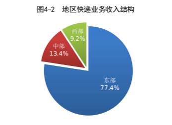 1-8月,東、中、西部地區快遞業務量比重分別為77.0%、15.5%和7.5%,業務收入比重分別為77.4%、13.4%和9.2%。與去年同期相比,東部地區快遞業務量比重下降1.5個百分點,快遞業務收入比重下降1.0個百分點;中部地區快遞業務量比重上升1.3個百分點,快遞業務收入比重上升0.7個百分點;西部地區快遞業務量比重上升0.2個百分點,快遞業務收入比重上升0.3個百分點。