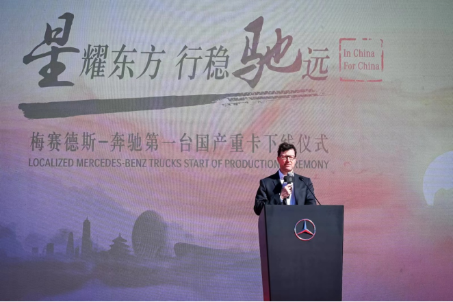 中國汽車工業協會常務副會長兼秘書長付炳鋒先生在致辭中指出,梅賽德斯-奔馳重卡的本土化生產,預示著商用車行業中外合資合作即將展開新的篇章。在生產制造技術、制造管理體系、質量控制體系等方面,梅賽德斯-奔馳有著多年的深厚積累,通過與中方合作伙伴的進一步深化合作,將卓越的技術、可靠性、效率及安全性能,與中國市場的洞察深入融合,充分發揮本地化供應鏈和服務體系的獨特優勢,相信梅賽德斯-奔馳將帶來滿足中國市場與客戶需求的高品質產品,助推中國重卡行業的轉型升級。
