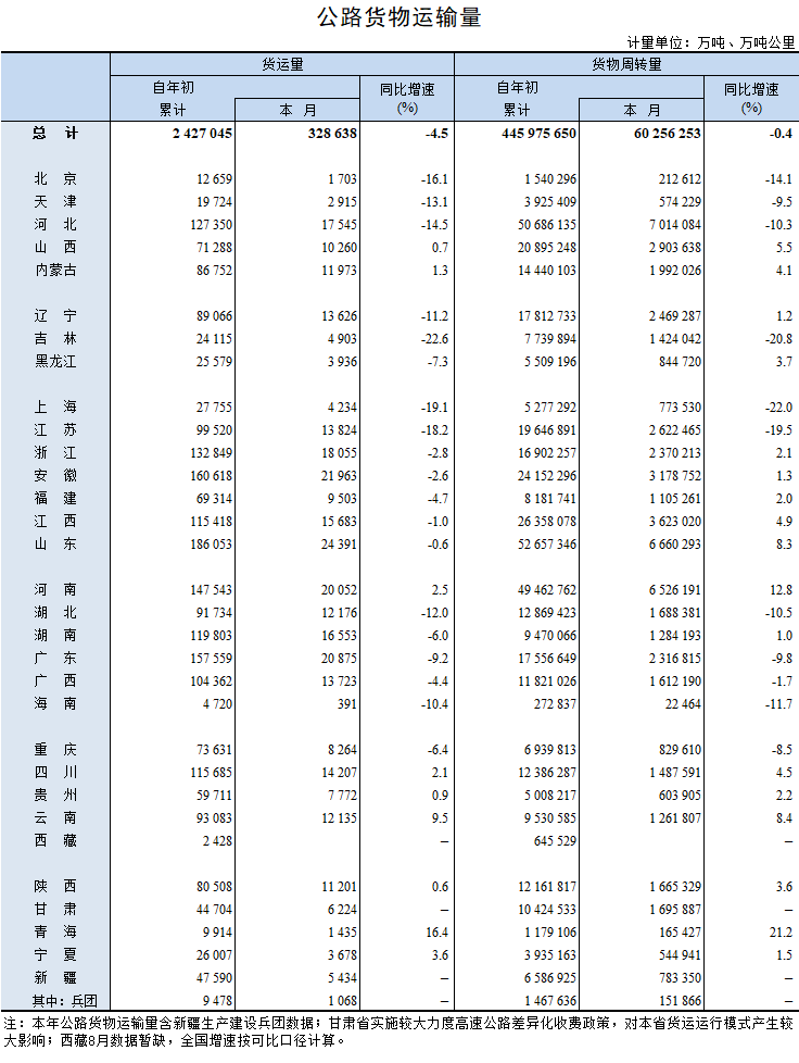 2022年8月公路貨物運輸量