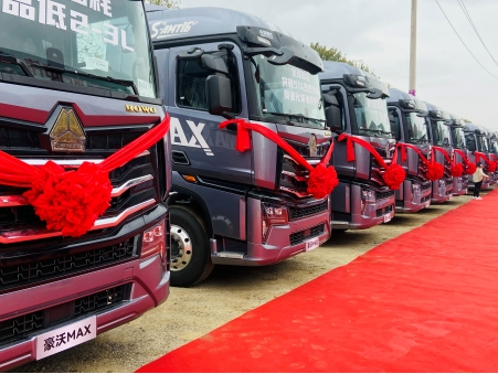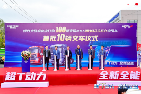 10月27日,在“煙臺大易盛物流訂購100輛豪沃MAX WP14T/610馬力牽引車 首批10輛交車儀式”上,第一批大馬力豪沃MAX牽引車正式交付。在濰柴動力集團、中國重汽集團、大易盛物流公司、煙臺貨物運輸行業協會、煙臺中偉汽車零部件有限公司、媒體記者的共同見證下,此次交車儀式圓滿完成。