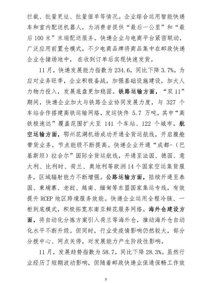 2022年11月中國快遞發(fā)展指數(shù)報(bào)告