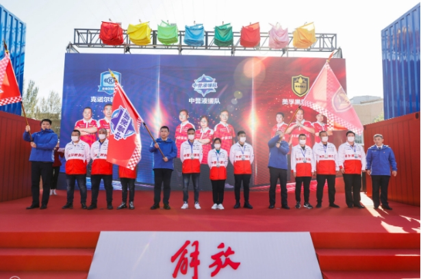 (長春現場:一汽解放總經理、黨委副書記-吳碧磊為克諾爾領創隊、中譽液緩隊、美孚黑霸王隊授旗)