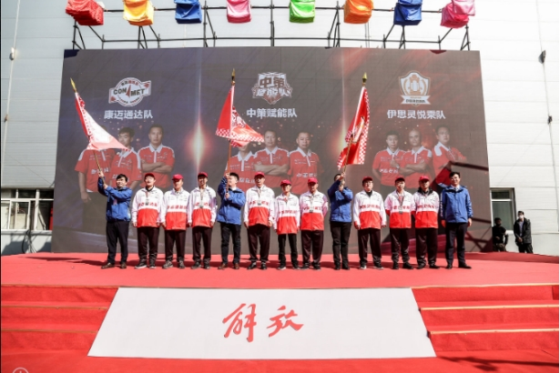 (青島現場:一汽解放常務副總經理、青島整車事業部總經理孔德軍為康邁通達隊、中策賦能隊、伊思靈悅乘隊授旗)