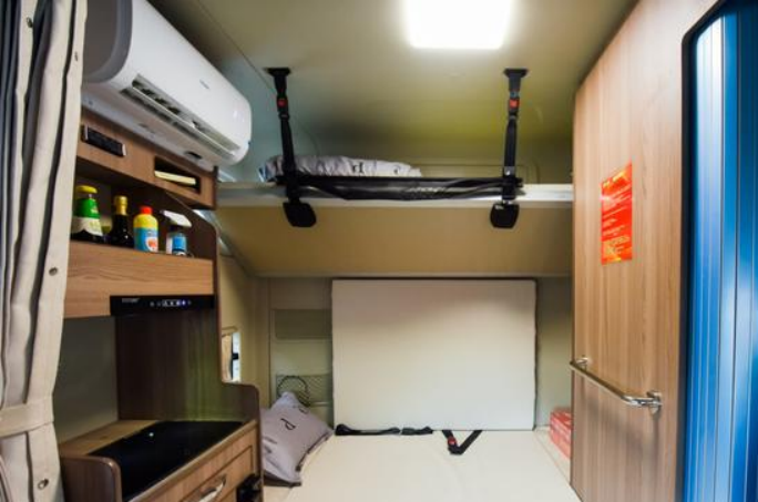 以最高端的生活艙為例,駕駛室面積高達(dá)7.5立方米,中部鋪設(shè)木質(zhì)地板,活動(dòng)暢通無(wú)阻礙,倘若一個(gè)小臥室一般;副駕駛背后配備有一個(gè)移動(dòng)小廚房,里面設(shè)置有電磁爐,洗碗池、吸油煙機(jī)以及收納柜等,只要備好蔬菜、肉類,在駕駛室內(nèi)就能做一頓美味大餐,對(duì)于當(dāng)下隨時(shí)可能被封控在駕駛室內(nèi)的駕駛員而言,在車中就能吃到熱乎的飯菜無(wú)異于是一種莫大的幸福。