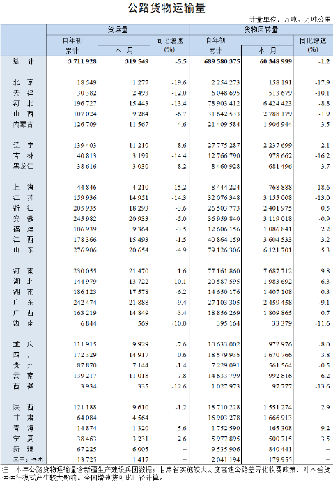 2022年12月公路貨物運輸量