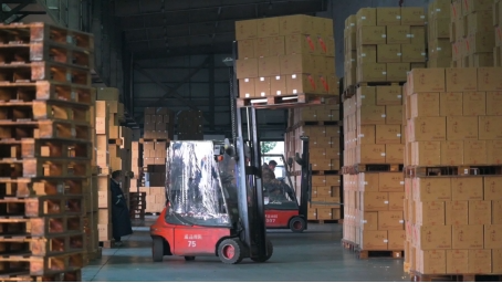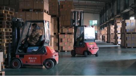 眾所周知,白酒價值高,且大多以玻璃或陶瓷材質瓶裝進行運輸,易碎易破損,特別是春節、中秋兩節旺季,發貨需求猛增,大大加劇了對廠內物流倉儲、出入庫配送的作業需求,對于物料搬運設備的高效性和安全性提出極大的考驗。洋河股份物流一部成品一科科長吳堅對林德叉車的效率性能深有體會:“在我們釀酒基地,使用的是林德電動平衡重叉車,雙踏板系統和指尖控制手柄,讓裝卸操作更輕松便捷,寬視野的門架設計,轉彎自動減速功能,承載貨物更安全穩定。”簡單的操作、精準的搬運,全方面助力洋河基地成品酒物流快速流轉。