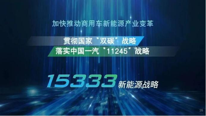 相信伴隨著“15333”新能源戰略的不斷落成,一汽解放必將在新能源領域再譜華章,與新能源生態合作伙伴共同打造一個開放、創新、分享的生態環境,為廣大客戶提供“中國第一、世界一流”的新能源智慧交通運輸解決方案,為加速“雙碳”目標實現、強大中國汽車產業、建成汽車強國作出更大貢獻!