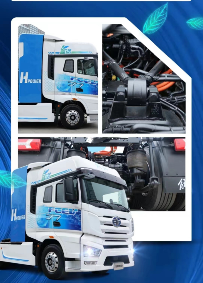 顧名思義,這款車是由氫燃料電池驅動,它在駕駛室后方安置了10個規格為202L的70兆帕高壓儲氫罐,在加滿氫氣的狀態下,滿載續航700km,完全可以應對中長途運輸。這款車還有超大功率的燃電系統,由氫氣發出的電能可直接驅動車輛行駛,提升車輛的適應性。應用電驅橋技術,減少變速箱、驅動橋等一系列部件的加入,底盤更為簡潔,傳動效率更高。