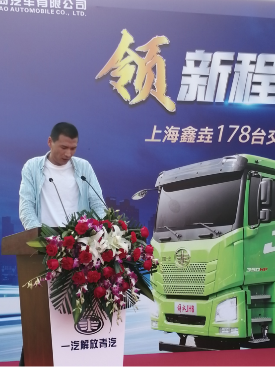 上海貴澤實業有限公司總經理田久超進行了發言,表示:青汽自卸能夠快速的、及時響應我們提出的訴求,并能及時的提供滿足我司運營場景的車輛和接地氣售后服務支持方案,使我更加堅定了長期合作的信心。