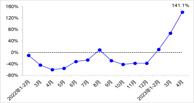 城市客運量方面,4月全國完成城市客運量82.4億人,同比增長47.9%,其中公共汽電車、城市軌道交通、巡游出租車、輪渡同比分別增長35.4%、95.0%、30.3%和254.7%。1—4月,全國完成城市客運量291.4億人,同比增長9.5%,其中城市軌道交通、巡游出租車、輪渡同比分別增長39.3%、3.5%和109.1%;公共汽電車客運量與去年同期基本持平。