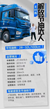 同時,考慮到當下貨運環境持續惡化,卡友的利潤空間被不斷擠壓,燃油費占比高達運營收益的1/3以上,卡車的“節油性”凸顯。一汽解放堅持“以客戶為核心”的理念,立足整車體系節油,持續技術升級,助力卡友實現降本增效。