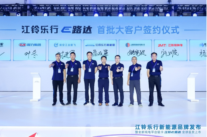 領先的技術實力,也讓江鈴樂行E路達備受業界認可。現場,江鈴樂行E路達首批大客戶訂單交付及生態伙伴簽約儀式成功舉行,首批意向訂單突破萬臺,這意味著江鈴樂行新能源在成就客戶的道路上,邁出了堅實一步。未來,江鈴樂行新能源還將陸續推出覆蓋智慧物流、綠色客運、任務&改裝領域的優質產品,持續為客戶創造美好生活賦能。
