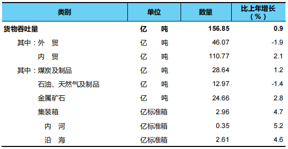3.營業(yè)性貨物運輸量為鐵路、公路、水路、民航完成數(shù),不包括管道數(shù)據(jù)。