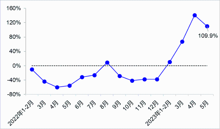 5月,完成交通固定資產(chǎn)投資3373億元,同比增長10.7%,其中,完成公路投資2723億元,同比增長9.5%;完成水運投資174億元,同比增長31.9%。