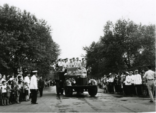 1956年7月14日,第一批12輛解放車前往省委報(bào)捷