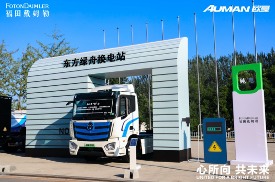 歐曼智藍底部換電重卡也是本場發布會的主要亮點之一。據了解,歐曼智藍底部換電重卡為正向研發平臺打造的全新產品,進一步解決了純電重卡安全性能不高、續航里程短、舒適性差、貨艙箱容積等問題。